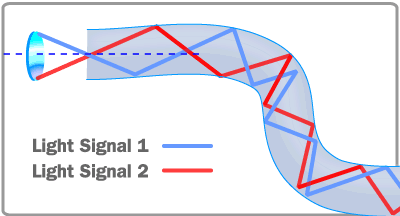 Sinyal dalam serat optik dihantarkan secara konstan oleh core dan dibiaskan oleh cladding. Karena cladding tidak menyerap sinyal yang mengenainya, maka sinyal dapat dihantarkan dalam jarak yang cukup jauh.